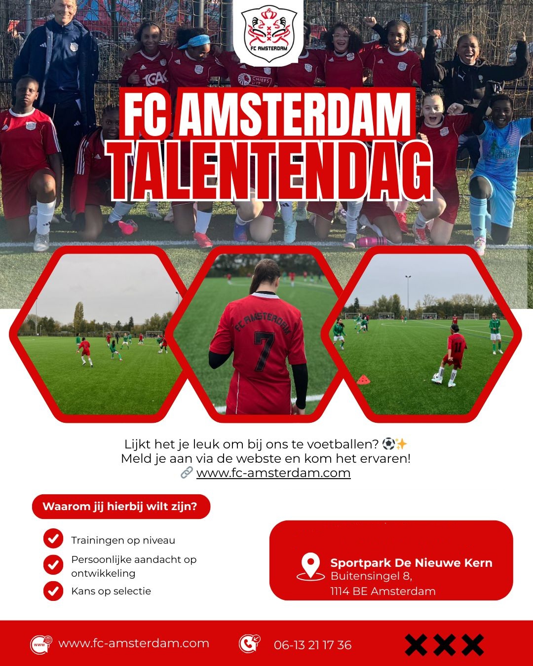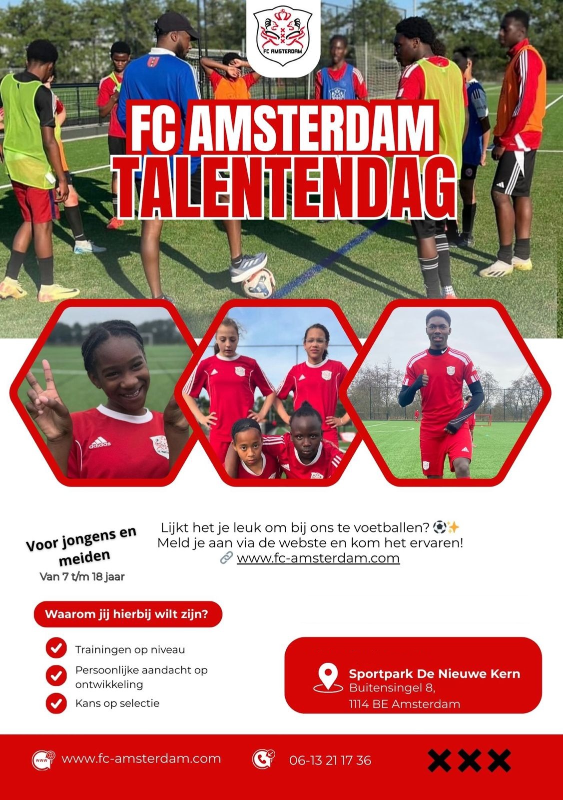 Droom jij ervan om je talent te laten zien op het voetbalveld? Dit is je kans! FC Amsterdam organiseert een Talentendag voor gemotiveerde en enthousiaste jongens en meisjes van O8 t/m O19 die hun kwaliteiten willen tonen en zich verder willen ontwikkelen binnen een ambitieuze en gezellige club.